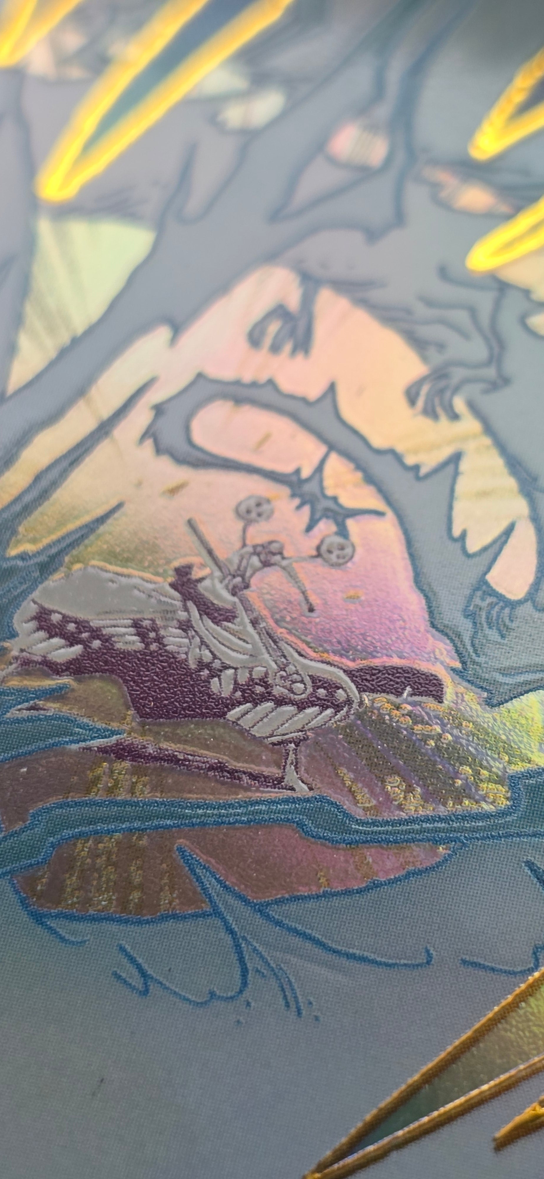 100% holographic with gold embossed textures you can feel!